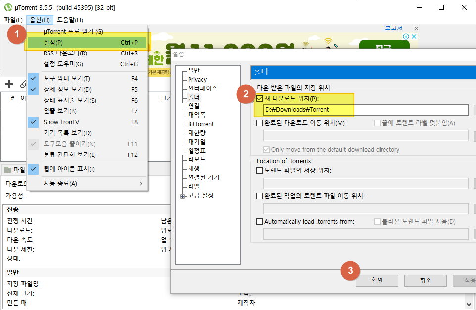 uTorrent 유토렌트 뮤토렌트 설치 및 설정