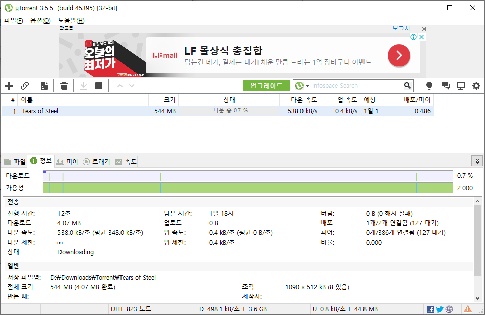 uTorrent 프로그램으로 토렌트 파일 다운로드 실습